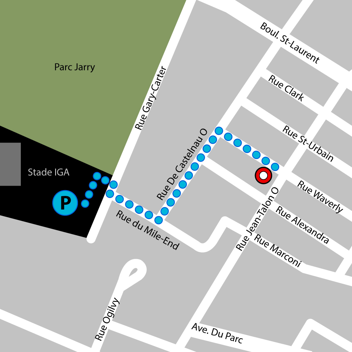 Vous pouvez stationner votre véhicule dans le stationnement du stade IGA, situé à 5 minutes de marche de Fabrik8. Le stationnement est offert au coût de 10 $ pour une plage de 12 heures dans la zone avec vignette seulement. Vous pouvez payer à la borne ou à la réception du stade.