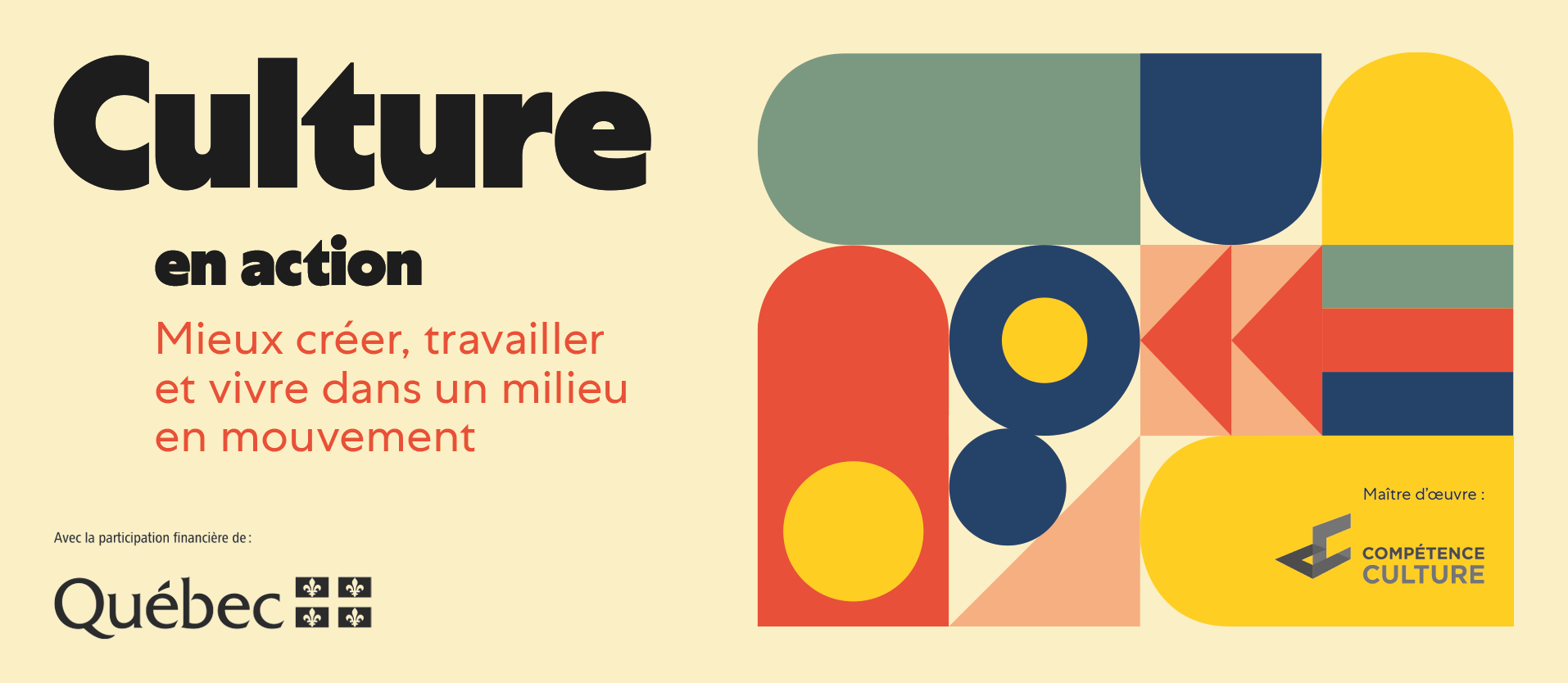 Le projet Culture en action, une initiative de Compétence Culture, le comité sectoriel de main-d’œuvre en culture, est né à la suite du constat des manques flagrants de main-d’œuvre et de filets sociaux en culture, constat exacerbé par la pandémie. Interpellé par la précarité du secteur culturel, plus apparente que jamais, l’organisme a mis en branle un vaste chantier ayant pour objectif un plan d’action concret pour l’avenir de la culture au Québec. Ce chantier permet aux différentes parties du milieu culturel de créer ensemble des solutions réalistes et faisables afin de mieux travailler dans le secteur culturel.